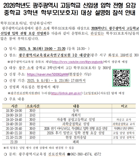 광주 고입 전형 관련 정보는 광주진로진학지원센터에서 확인할 수 있다.