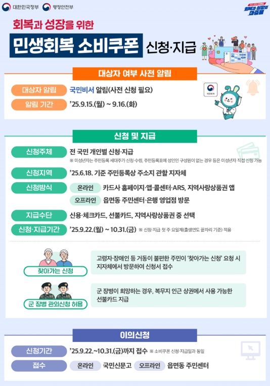 김인보 여수시 경제일자리과장은 “이번 2차 지급 역시 무엇보다도 시민들이 안전하고 편리하게 소비쿠폰을 지급받을 수 있도록 최선을 다하겠다”며 “시 누리집이나 주민센터 외에 URL이 포함된 문자 등은 공식 안내가 아니므로 스미싱 피해에 각별히 주의해달라”고 당부했다.