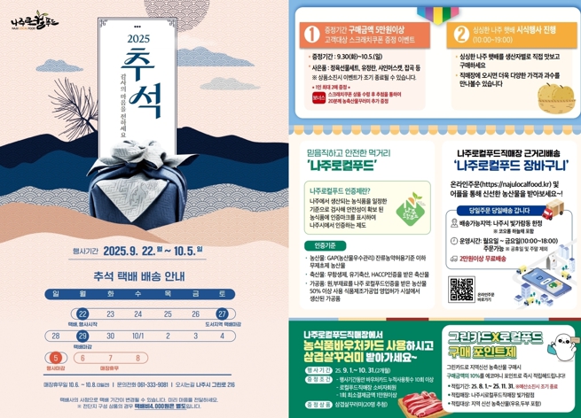 나주시는 지역 농산물 소비 촉진과 농가 판로 지원을 위해 오는 10월 5일까지 나주로컬푸드직매장에서 선물세트 판매전을 진행한다고 24일 밝혔다.