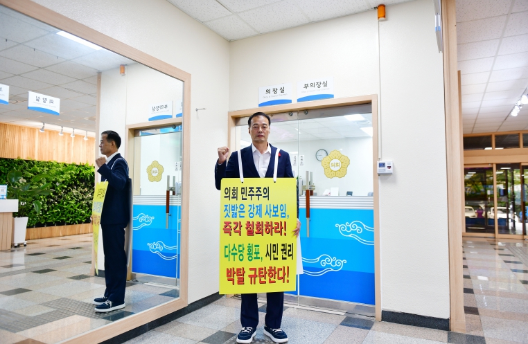 현장에서 배포한 대시민 호소문에서 그는 △강제 사·보임 의결 철회 △의장의 공개 사과와 책임 있는 조처 △사·보임 절차의 제도적 명문화 △무소속 의원을 포함한 모든 의원의 독립적 의정활동 보장 등 네 가지 요구사항을 밝히며, “이 요구가 관철될 때까지 무기한 1인 시위에 돌입하겠다”고 선언했다.