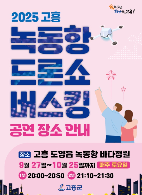 이번 9월 27일 녹동항 드론쇼 버스킹 공연은 다양한 음색을 가진 트로트 가수들이 출연해 군민과 관광객들에게 흥겨운 무대를 선사할 계획이다.