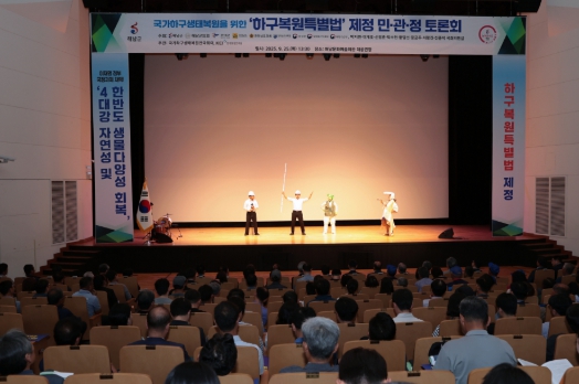 이번 토론회는 지난 40여 년간 하굿둑 건설 이후 강과 바다의 순환이 단절되면서 고질적인 수질 오염 문제와 생물다양성 훼손, 연안습지의 사막화 등 사회경제적인 문제들이 양산되고 있는 만큼, 오랜 정책 현안들을 해결하는 국정과제 이행의 법적 근거인 특별법 제정을 위해 마련됐다.