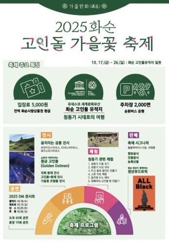 강삼영 문화예술과장은 “이번 화순 고인돌 가을꽃 축제에서 문화누리카드 이용을 통해 더욱 풍성한 축제 체험을 즐기시기를 바란다”라며 문화누리카드 사용을 독려했다.