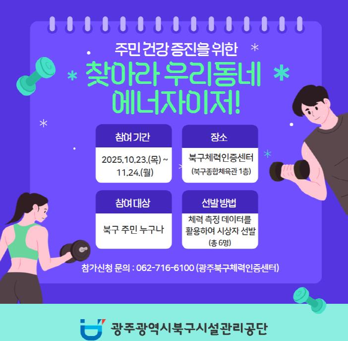 이번 대회는 10월 23일부터 11월 24일까지 북구체력인증센터에서 진행된다.