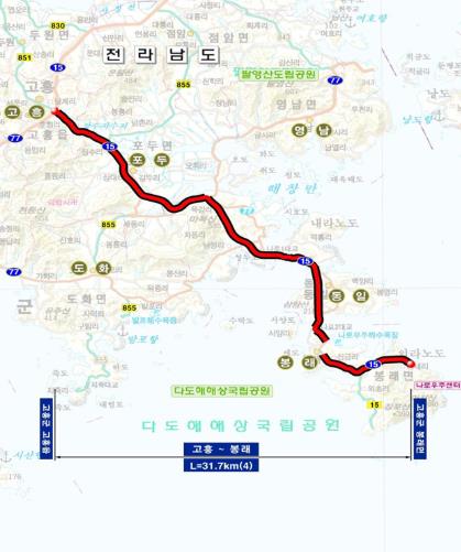‘국도 15호선 고흥~봉래 확장사업’은 고흥군 고흥읍 호형리부터 봉래면 예내리(나로우주센터)까지 31.7km 구간을 기존 2차로에서 4차로로 확장하는 사업이며, 총사업비는 6,521억 원(예비타당성조사 기준) 규모다.