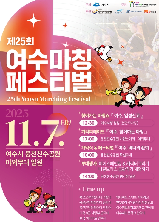 올해로 25회를 맞는 이번 축제에는 9개 마칭밴드가 참여해 수준 높은 음악과 관악 퍼포먼스를 선보이며 시민과 관광객 모두에게 특별한 감동을 선사할 예정이다.