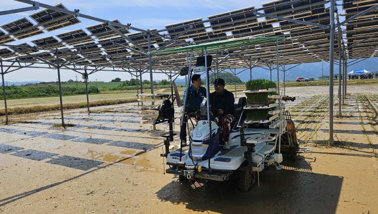 올해 6/11일 이앙을 시작으로 벼 재배와 태양광발전을 병행하는 실증재배에 나섰고, 최근 수확까지 마쳤다.