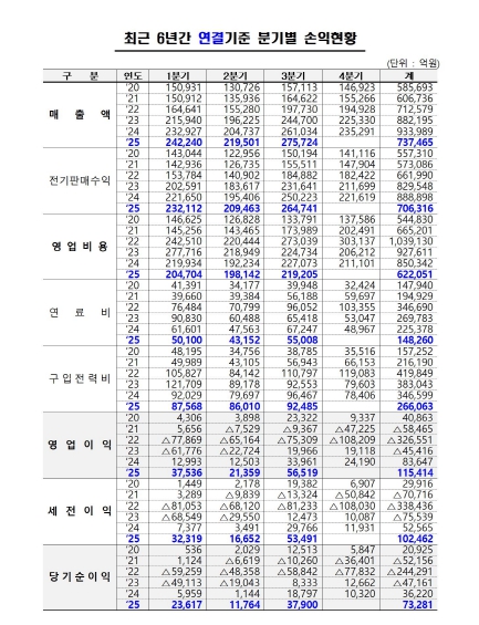 이에, 한전은 전기요금 총괄원가 내역을 투명하게 공개하고 지속적으로 재정건전화 계획을 충실히 이행하는 한편, 요금 현실화와 구입전력비 절감 등을 통한 재무 건전성을 확보하여, 에너지고속도로 및 AI 인프라를 위한 국가 전력망 적기 구축에 차질이 없도록 정부와 긴밀히 협의해 나갈 계획이다.