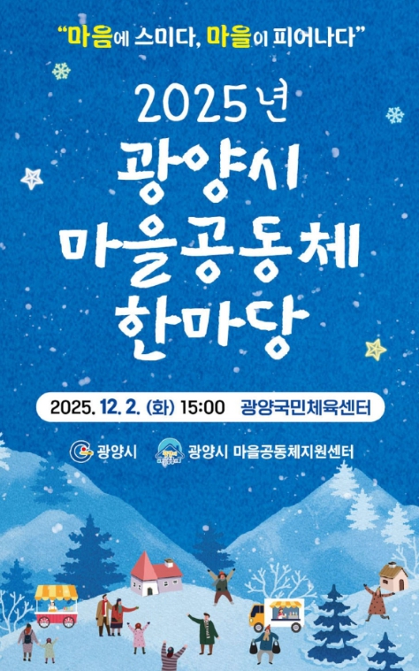 올해 행사는 ‘마음에 스미다, 마을이 피어나다’를 주제로 열리며, 시립합창단의 식전공연을 시작으로 ▲마을공동체 활동 경과보고 ▲마을공동체 유공자 표창 ▲공동체 비전 퍼포먼스 ▲난타 공연 ▲우수사례 발표 등 다채로운 프로그램이 이어질 예정이다.