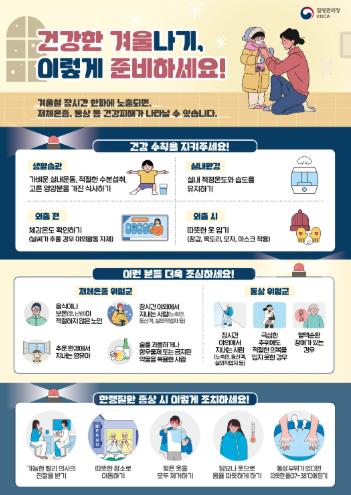 아울러 충분한 수분 섭취와 적정한 실내 온·습도 유지, 방한용품 착용 등 생활 속 예방수칙을 꾸준히 실천하는 것이 한랭질환 예방에 도움이 된다.