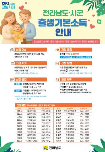 전남도는 2025년 11월 기본사회 흐름을 반영해 ‘전라남도 출생기본소득 지급에 관한 조례’를 개정하고, 제도 명칭을 출생기본수당에서 출생기본소득으로 변경했다.