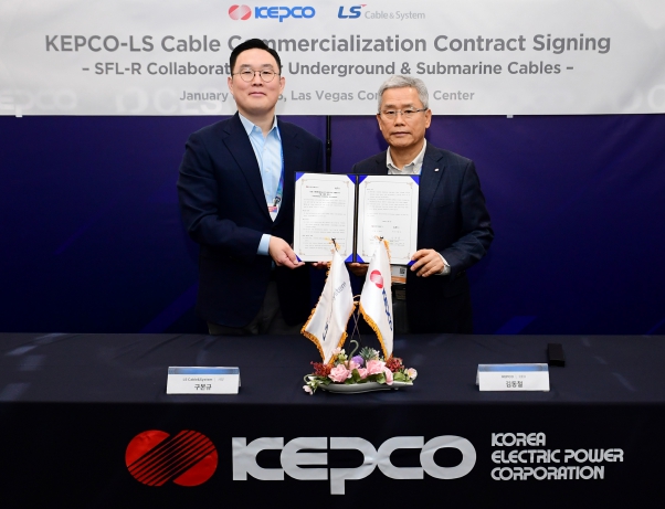 한전은 1월 6일(화) CES 2026 행사가 개최되는 미국 라스베가스에서 한전의 지중·해저케이블 상태판정 기술 SFL-R(Smart Fault Locator-Real Time, 실시간 탐지 기술)의 사업화 협력과 글로벌 시장 공동 진출을 위해 LS전선과 계약을 체결했다. 체결식에는 한전 김동철 사장과 LS전선 구본규 사장 등 양사 경영진이 참석했다.