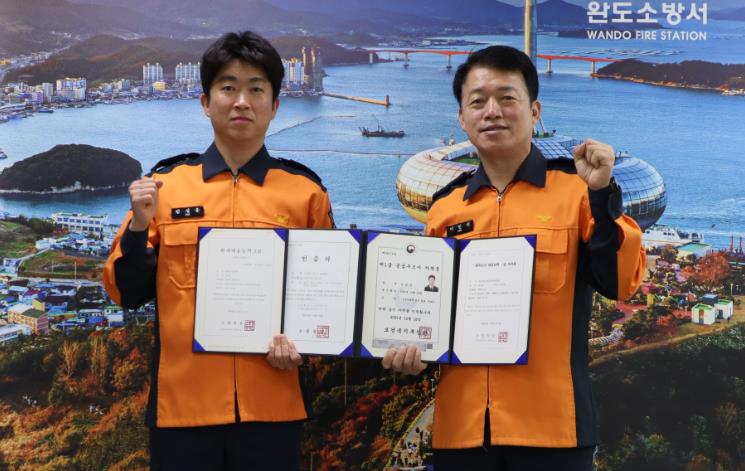 그는 이 밖에도 완도 지역의 지리적 특성에 맞춰 프리다이빙, 테크니컬 다이빙, 소형선박조종면허, 특수트레일러 운전면허 등 재난 현장에 필요한 전문 자격증을 다수 보유한 베테랑이다.