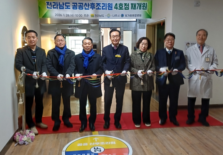 나주 혁신도시 빛가람종합병원에선 28일 윤병태 나주시장, 윤연화 전남도 인구청년이민국장, 병원 관계자 등 50여 명이 참석한 가운데 전남도 공공산후조리원 4호점 재개원식이 진행됐다.