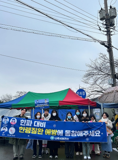 나주시보건소는 최근 급격한 기온 하강으로 한파 재난 위기경보가 ‘주의’ 단계로 격상됨에 따라 지난 10일 영산포풍물시장 일대에서 한랭질환 예방을 위한 현장 홍보 캠페인을 벌였다고 12일 밝혔다.