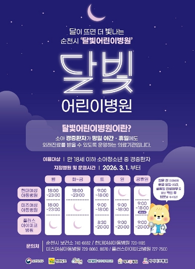 시 관계자는 “달빛어린이병원은 단순한 야간 진료기관이 아니라, 아이들이 살던 지역을 떠나지 않고 제때 진료받을 수 있도록 하는 의료안전망”이라며 “앞으로도 의료공백 없는 운영을 이어가고, 시민들이 더 편리하게 이용할 수 있도록 운영시간과 안내체계를 지속 개선해 나가겠다”고 말했다.
