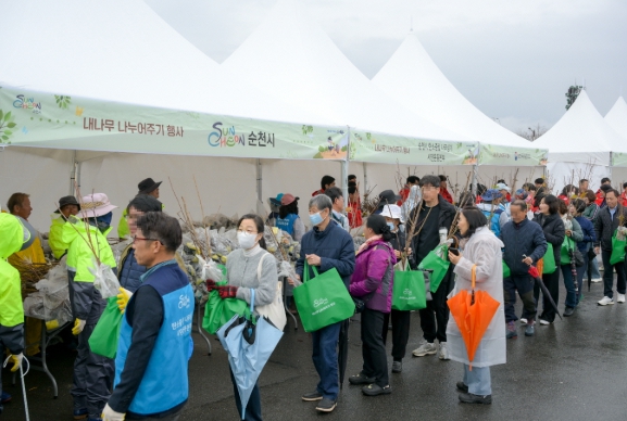 이번 행사는 전라남도, 순천국유림관리소, 순천농협, 순천시산림조합과 협력하여 마련됐으며, 대추·살구·자두·복숭아 등 과실수와 황칠, 서향(천리향), 미니화분 등 총 7종 21,000주의 묘목을 준비해 순천시민 3,000명에게 1인당 7주씩 배부했다.