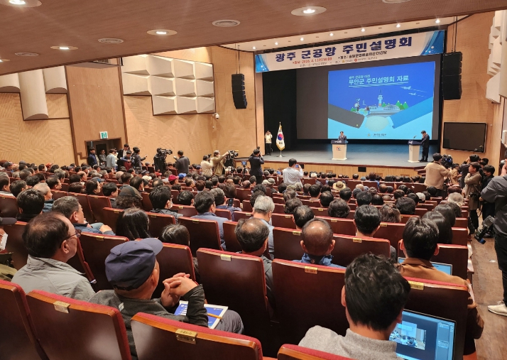 광주광역시는 이날 오후 2시 전남 무안군 승달문화예술회관에서 국방부 주관으로 ‘광주 군공항 이전 관련 주민설명회’가 성황리에 개최됐다고 밝혔다.