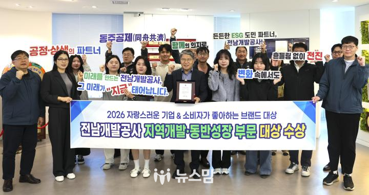 장충모 전남개발공사 사장은 “2026 자랑스러운 기업 & 소비자가 좋아하는 브랜드 대상 수상은 도민과 지역사회가 체감할 수 있는 가치 창출에 힘써온 공사의 노력이 대외적으로 인정받은 성과”라며 “앞으로도 전남‧ 광주통합특별시 출범에 맞춰 미래 성장동력을 키우는데 공공의 책임과 역할을 다하겠다”고 밝혔다.