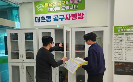대촌동에 거주하는 한 주민은 “선반을 설치하려고 드릴이 필요했는데, 한번 쓰려고 사기엔 부담스러웠다”면서 “공구 사랑방 덕분에 비용도 아끼고, 편리하게 작업을 마칠 수 있었다”라며 만족감을 전했다.