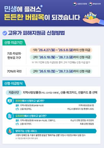 아울러 시는 ‘국민비서(구삐)’ 알림 서비스를 통해 지급 시작 이틀 전 개별 안내 메시지를 발송하는 등 시민들이 신청 시기를 놓치지 않도록 지원할 예정이다.