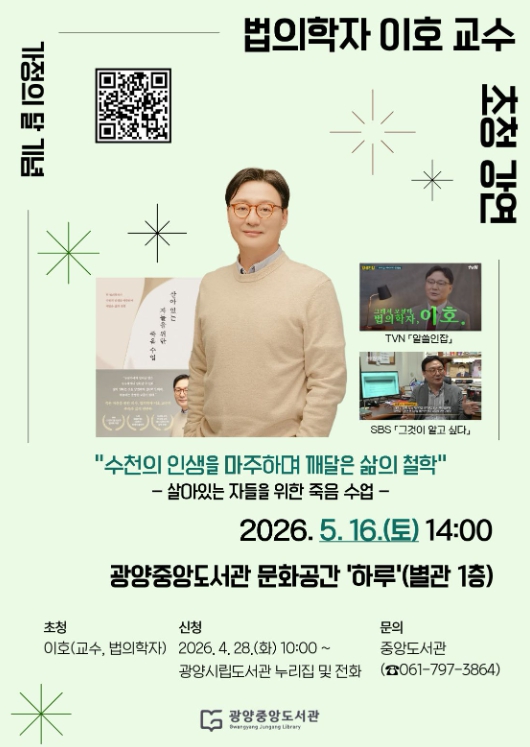참여 신청은 4월 28일 오전 10시부터 광양시립도서관 누리집 또는 전화로 할 수 있으며, 광양시민이면 누구나 참여할 수 있다.