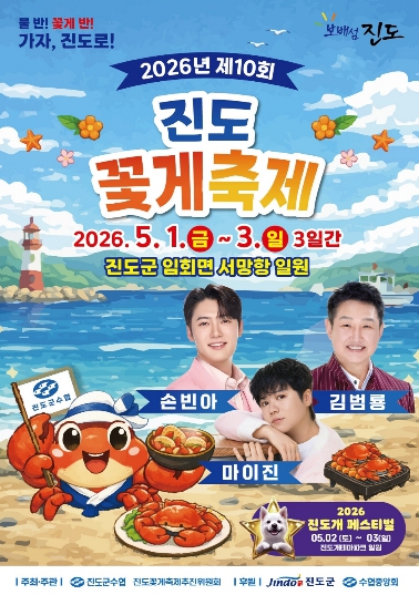 특히, 이번 축제는 5월 2일부터 3일까지 진행되는 ‘2026 진도개 페스티벌’과 연계해 서망항과 진도개테마파크를 왕복 운행하는 버스(셔틀)를 운행하고, 진도개 페스티벌 방문객에게 할인권을 제공해 꽃게축제장에서 꽃게를 할인 판매하는 등 상승효과(시너지 효과)를 낼 것으로 기대된다.