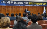 순천 전향윤 기자2026. 03.09[뉴스맘]전라남도와 광주광역시의 행정통합이 법제화되며 ‘호남권 메가시티’ 실현이 가시화되는 가운데, 목포시가 통합 이후 지역의 미래 청사진을 마련하기 위한 선제적 대응에 나섰다. 시는 지난 9일 시청 회의실에서 전 직원을 대상으로 '전남·광주 행정통합 대응 공직자 역량강화 교육'을 실시했다. 이번 교육은 지난 3월 5일 국회 의결을 거쳐 공포된 '전남광주통합특별시 설치를 위한 특별법'에 따라 오는 7월 통합특별시 출범을 목표로 추진되고 있는 행정통합에 체계적으로 대비하기 위해 마련됐다. 이날 교육은 전남연구원 김대성 상생협력단장…