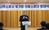 정치 전향윤 기자2026. 01.22[뉴스맘]전라남도의회 최명수 도의원(더불어민주당·나주2)은 1월 22일 나주소방서 대회의실에 열린 ‘빛가람 의용소방대 발대식’에 참석해 발대를 축하하고, 지역 안전 강화를 위한 의용소방대의 역할과 중요성을 강조했다. 이날 발대식에는 윤병태 나주시장, 신향식 나주소방서장과 소방공무원, 김용준·장숙희 나주시 의용소방대 연합회장과 의용소방대원, 이재태 전라남도의원, 나주시 의원 등 100여 명이 참석해 자리를 빛냈다. 빛가람 의용소방대는 채기천 대장을 중심으로 총 30명의 대원으로 구성됐으며, 나주 혁신도시 중심 지역인 빛가람동의…