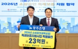 전남 전향윤 기자2026. 01.22[뉴스맘]광주은행은 22일 광주광역시청에서 강기정 광주광역시장, 정일선 광주은행장, 염규송 광주신용보증재단 이사장 및 관계자가 참석한 가운데 ‘2026년 소상공인 특례보증 대출 지원사업 협약’을 체결했다고 밝혔다. 이번 협약을 통해 광주은행은 고금리와 경기침체 등으로 어려움을 겪는 광주지역 소상공인(골목상권)에 대한 금융지원 확대를 위해 23억 원을 특별출연했다. 이를 재원으로 광주신용보증재단은 총 466억 원 규모의 특례보증을 지원하며, 광주광역시는 1년간 3~4%의 이차보전을 지원할 계획이다. 소상공인 특례보증 융자 지원…