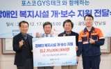 광양 전향윤 기자2025. 12.19[뉴스맘]광양시는 지난 17일 포스코GYS테크가 사회복지시설 개·보수를 위한 지정기탁금 2천만 원을 전남지체장애인협회 광양시지회에 전달했다고 밝혔다. 이날 광양시청 만남실에서 열린 전달식에는 광양시장, 정우영 포스코GYS테크 대표, 박현석 전남지체장애인협회광양시지회장, 김재경 (재)광양시사랑나눔복지재단 이사장 등 10여 명이 참석했다. 기탁금은 전남지체장애인협회 광양시지회 시설의 지붕 개·보수 공사와 직원 휴게 공간 조성에 사용될 예정으로, 이용자와 종사자 모두의 안전과 근무 환경 개선에 실질적인 도움이 될 것으로 기대된다. …