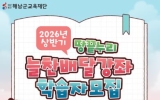영광 전향윤 기자2026. 01.20[뉴스맘]해남군교육재단은 군민 평생학습 환경 조성을 위해 상반기 땅끝누리 늘찬배달강좌 학습자를 모집한다. 상반기 땅끝누리 늘찬배달강좌는 3월 3일부터 6월 19일까지 총 16주간 운영되며, 기간 중 총 13회 강좌로 구성된다. 운영 대상은 원칙적으로 10인 이상으로 구성된 학습팀이며, 악기를 활용한 강좌에 한해 7인 이상으로 구성된 학습팀도 신청 가능하도록 운영 기준을 적용한다. 모집 규모는 총 135팀 내외다. 특히 올해 상반기에는 기존 ‘1인 1강좌 신청’에서 동일한 학습팀원이 구성되는 조건하에 1인당 최대 2개 강좌까…