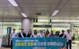 광산구 전향윤 기자2025. 06.26[뉴스맘] 광주교통공사는 26일 광주시 서구 상무역에서 도시철도 이용객을 대상으로‘소비 촉진 캠페인’을 열고, 위축된 소비 심리 회복과 민생 경제 활성화를 위한 시민 홍보 활동을 펼쳤다고 밝혔다. 이날 캠페인에서는 공사 임직원 20여명이 참여한 가운데 월 1회 이상 주변 전통시장·동네상점 방문, 광주시 공공배달앱 이용, 광주상생카드를 포함한 지역화폐 사용 권장 등 상권 안정과 민생 회복을 위한 다양한 방안을 홍보하며 시민들의 적극적인 참여를 독려했다. 특히 참여자들은 캠페인을 마친 후 본사 구내식당 대신 인근 소상공인 식…