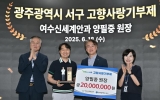 [뉴스맘]광주광역시 서구에 고향사랑기부제 최고액 기부자가 탄생했다. 서구는 18일 고향사랑기부금 2천만원을 기부한 양필중 여수 신세계안과 원장에게 감사패를 전달했다고 밝혔다. 올해부터 고향사랑기부제의 개인 연간 기부한도가 기존 500만원에서 2천만 원으로 상향된 가운데 양 원장의 기부는 광주에서 첫 2천만원 기부 사례로 기록됐다. 양 원장은 광주 출신으로 조선대학교 의학대학을 졸업하고 광주 보라안과병원와 밝은안과21병원에서 원장으로 재직했으며 현재는 여수에서 신세계안과를 운영하고 있다. 양 원장은 의료 현장을 옮긴 후…