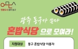 동구 전향윤 기자2025. 06.04[뉴스맘]광주 동구는 관내 혼밥식당 32개소 식당 이용자 중 선착순 100명에게 1인당 최대 1만 원의 체험비를 지원하는 이벤트를 5일부터 7월4일까지 진행한다고 밝혔다. 이번 이벤트는 동구 혼밥식당 이용 후기를 SNS 계정에 올려 혼밥식당을 적극 알리고, 지원비 신청서를 작성하면 된다. 지원비 신청은 7월 13일까지다. 동구는 광주 5개 자치구 중 1인 가구 비율(43.6%)이 가장 높은 데다, ‘혼밥족(혼자 밥을 먹는 사람들)’이 급증함에 따라 혼자서도 편안하고 건강한 한 끼를 먹을 수 있는 동구 혼밥식당 32개소를 운영…