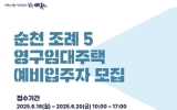 순천 전향윤 기자2025. 05.27[뉴스맘]순천시는 주거 취약계층의 주거복지 수요 증가에 대응하기 위해 ‘순천조례5차 영구임대주택’ 예비입주자 180세대를 모집한다. 이번 영구임대주택모집은 조례주공5차 내 501~504동을 대상으로 하며, 공급형별 26.37㎡ 150세대, 31.32㎡ 30세대로 예비입주자 180세대를 모집한다. 모집일정은 6월 16일부터 6월 20일까지 5일간 주민등록상 주소지 관할 읍·면·동 행정복지센터에서 방문 접수 받는다. 신청자격은 공고일 기준 성년자(만 19세 이상)로, 무주택세대구성원이어야 하며, 입주자 모집 공고문에 명시된 …