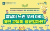 문화 전향윤 기자2025. 05.26[뉴스맘]광주동·서부교육지원청이 ‘특수교육대상자 무상·의무교육 자료’를 제작, 배포한다. 이번 자료는 취학 전 영아와 3~5세 특수교육대상 유아 및 초·중·고등학교 특수교육대상학생, 학부모가 생애주기별로 적절한 특수교육 및 특수교육 관련 서비스를 받을 수 있도록 지원하기 위해 제작됐다. 자료는 영아부터 고등학생까지 특수교육대상자 선정 및 배치와 무상·의무교육 지원 등에 대한 안내를 담은 리플릿 1종과 포스터 1종 등 총 2종이다. 특히 '발달이 느린 우리 아이, 어떤 교육이 필요할까요?'를 주제로 ▲특수교육대상자 영아 무상교육…