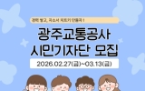 전남 전향윤 기자2026. 02.26[뉴스맘]광주교통공사가 광주도시철도의 생생한 현장 소식을 시민의 눈으로 기록하고 전달할 ‘2026 시민소통기자단’을 공개 모집한다. 이번 모집은 도시철도 2호선 건설 현황과 주요 역세권 소식 등 공사의 주요 사업과 현장을 시민의 시각으로 전달하고, 온라인 홍보 콘텐츠를 활성화하기 위해 마련됐다. 선발된 기자단은 약 9개월간 현장 취재를 통해 블로그 포스팅과 SNS 영상 제작 등 다양한 형태의 콘텐츠를 제작하게 된다. 특히 올해는 숏폼 등 영상 콘텐츠 트렌드에 발맞춰 영상 분야(6명)를 새롭게 선발한다. 영상 분야는 개인 지원뿐 …