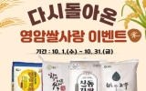 문화 전향윤 기자2025. 09.29[뉴스맘]영암군이 10월1일부터 31일까지 지역 농산물 소비 촉진, 고향사랑기부제 활성화를 위해 총 750명에게 혜택을 주는 ‘다시 돌아온 영암쌀사랑 이벤트’를 진행한다. 행사 기간 영암군에 10만원 이상 고향사랑기부금 기부자 선착순 300명과 추첨 선정자 450명에게 영암 대표 브랜드 쌀을 증정하는 것. 당첨자에게는 달마지쌀 5kg, 학이머문쌀·신동진쌀·하이아미쌀 4kg 중 1종을 무작위로 제공한다. 이벤트에는 고향사랑e음, 위기브, 웰로 등에 고향사랑기부하면 자동 참여되고, 당첨자 발표는 11월6일까지 개별 전화 문자…