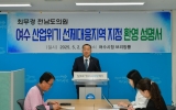 진도 전향윤 기자2025. 05.02[뉴스맘]여수시의회는 정부가 여수시를 전국 석유화학산단 가운데 최초로 ‘산업위기 선제대응지역’으로 지정한 것에 대해 적극 환영하며, 이번 결정이 지역 산업의 회복과 재도약을 위한 전환점이 될 것으로 기대한다고 밝혔다. 정부는 여수를 산업위기 선제대응지역으로 지정하고, 향후 2년간 매출이나 영업이익이 감소한 기업에 긴급경영안정자금을 지원하며, 협력업체에는 정책금융 만기 연장과 우대보증을 제공한다. 또한, 친환경·고부가가치 소재 중심의 연구개발(R·D)과 고용 안정 사업 등도 집중 지원할 예정이다. 이번 지정은 석유화학산업 분야…