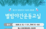 문화 전향윤 기자2025. 05.01[뉴스맘]광주 광산구가 시민 누구나 저녁 틈새 시간 함께 할 수 있는 무료 건강 프로그램 ‘별밤야간운동교실’을 운영한다. 운동할 시간이 부족한 시민에게 건강한 신체활동 기회를 제공하기 위해 마련한 프로그램이다. 5월 12일부터 7월 말까지 첨단 쌍암근린공원, 선운근린공원, 경암근린공원, 황룡친수공원, 임방울어린이공원 등 광산구 5개 공원에서 주 2회 저녁 7시부터 8시까지 운영한다. 이 기간 월요일, 수요일엔 쌍암‧선운 2개 공원에서, 화요일과 목요일은 경암‧황룡‧임방울어린이 3개 공원에서 운동 교실이 열린다. 전문 강사와 …