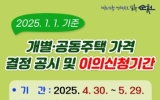 순천 전향윤 기자2025. 04.30[뉴스맘]순천시는 2025년도 1월 1일 기준 개별주택가격을 4월 30일 결정·공시하고 5월 29일까지 이의신청을 받는다고 밝혔다. 공시 대상 개별주택은 28,331호로 평균 개별주택가격은 전년대비 2.11% 상승했다. 이는 주택가격 산정의 기초가 되는 표준주택가격의 상승에 따른 것으로 지난 28일 개최된 순천시 부동산가격공시위원회의 심의를 거쳐 최종 결정됐다. 개별주택가격은 시 누리집과 부동산공시가격알리미를 통해 열람할 수 있으며, 가격에 대한 이의가 있는 소유자 및 이해관계인은 이의신청서를 작성하여 5월 29일까지 시청 …