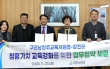 광주 전향윤 기자2025. 11.26[뉴스맘]강진군과 경기도 구리남양주교육지원청이 청렴한 공직문화 확산을 위해 손을 맞잡았다. 양 기관은 지난 25일 강진군 군수실에서 ‘다산청렴교육 업무협약(MOU)’을 체결하고, 청렴가치 실현을 위한 실질적인 협력체계를 구축하기로 했다. 이날 협약식에는 강진원 강진군수와 서은경 구리남양주교육지원청 교육장을 비롯해 두 기관 관계자 10여 명이 참석한 가운데 진행됐다. 이번 협약은 수도권 교육공직자 대상 청렴교육 기반을 넓히는 첫걸음이라는 점에서 의미가 크다. 협약에 따라 구리남양주교육지원청 산하 초·중·고 교사와 공무원 등…