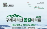 구례 전향윤 기자2026. 02.23[뉴스맘]전남 구례군은 아름다운 자연환경을 배경으로 한 ‘제1회 구례 지리산봄길 마라톤대회’가 오는 5월 2일 구례공설운동장에서 개최된다고 밝혔다. 이번 대회는 오마이뉴스 광주전라본부와 구례군육상연맹이 주최·주관하고 구례군이 후원하는 행사로 마라톤 종목 저변 확대와 구례 지역 홍보를 위해 마련됐다. 대회종목은 하프코스(21.0975km), 10km, 5km 총 3개 부문이다. 참가자들은 오전 8시 30분부터 순차적으로 출발해 지리산의 봄 풍경을 따라 달리게 된다. 참가 신청은 2월 23일부터 공식 홈페이지를 통해 접수를 시작하…