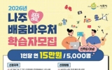 나주 전향윤 기자2026. 02.23[뉴스맘]전라남도 나주시가 시민의 평생학습권 보장과 자기계발 지원을 위해 5천 명 규모의 ‘2026년 나주애(愛)배움바우처’를 본격 운영하며 체감형 평생교육 혁신정책을 이어간다. 나주시는 19세 이상 시민을 대상으로 연간 15만 원을 바우처 전용 카드로 지원하는 ‘나주애배움바우처’ 학습자 신청을 3월 4일부터 20일까지 접수한다고 23일 밝혔다. 나주애배움바우처는 민선 8기 출범과 함께 2023년 전라남도 최초로 도입된 이후 시민들의 높은 참여 속에 지속 확대돼 온 맞춤형 평생학습 정책이다. 사업 첫해 2500명 지원을 시작으…
