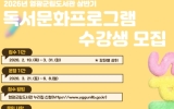 영광 전향윤 기자2026. 02.23[뉴스맘]영광군은 오는 3월 21일부터 군민의 독서 역량 강화와 평생학습 기회 확대 지원을 위해“2026년 영광군립도서관 상반기 독서문화 프로그램”을 운영한다고 밝혔다. 이번 프로그램은 ▲유아 대상 ‘노래하는 영어 그림책 교실 1’, ▲초등 대상 ‘노래하는 영어 그림책 교실 2’, ‘책뜨락-명화로 토론하다’, ‘우리나라 유네스코 세계문화유산’▲성인 대상 ‘독서지도사 자격증반’, ‘힐링 어반 스케치’등 6개 강좌로, 특히 독서지도사 자격증반은 수강 완료 후 책놀이지도사 2급도 함께 응시 및 취득이 가능하다. 수강신청은 영광군립도서…
