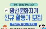 [뉴스맘]광주 광산구가 광산구 문화예술 온라인 홍보단 ‘2026년 광산문화지기’ 참여자를 3월 10일까지 모집한다. ‘광산문화지기’는 광산구의 다양한 문화예술 공연과 행사 현장을 직접 취재하고, 누리소통망(SNS)에 생생한 후기를 작성, 공유하는 온라인 홍보단이다. 광산문화지기는 4월부터 12월까지 약 9개월간 활동한다. 모집 인원은 10명 내외로, 문화예술에 관심이 많고 누리소통망(SNS) 활용이 능숙한 시민이라면 누구나 참여할 수 있다. 참여 방법은 광산구 누리집 새소식에서 신청 서류를 내려받아 3월 10일까지 전자우편으로…