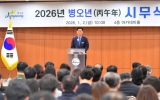 해남 전향윤 기자2026. 01.02[뉴스맘]장성군이 2일 오전 군청 아카데미홀에서 시무식을 갖고, 한 해 업무의 시작을 알렸다. 김한종 장성군수와 부서장, 공무원 등 500여 명이 참석했다. 김한종 군수는 신년사를 통해 “지난해 고물가와 고금리, 인구 위기라는 거센 파도에도 군민의 단결된 힘과 향우들의 애향심 덕분에 흔들리지 않았다”면서 “올해는 ‘함께 만드는 성장 장성, 함께 여는 행복한 미래’라는 비전 아래 다시 한번 도약하겠다”고 했다. “군민의 삶이 체감적으로 바뀌는 성장, 모두가 화합하는 ‘대동(大同) 장성’의 미래를 열겠다”는 말로, 올해 군정 추진…
