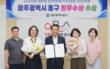 동구 전향윤 기자2025. 09.23[뉴스맘]광주 동구는 문화체육관광부 소관 (사)한국문화가치연구협회가 주관한 ‘제6회 한국문화가치대상’에서 최우수상을 수상했다고 밝혔다. ‘한국문화가치대상’은 지난 2019년 제정돼 매년 지방자치단체의 문화사업 성과를 평가·시상하는 상으로, 지역의 문화·관광·예술 분야 발전에 기여한 우수 지자체를 선정해 상을 수여한다. 올해는 문화산업 분야 전문가들의 1차 심사와 협회 주관 2차 심사를 거쳐 정성·정량평가를 종합했으며, 동구는 그 성과를 인정받아 최우수상의 영예를 안았다. 동구는 ▲365일 설레는 36.5℃ 따뜻한, ‘인문도시…