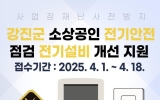 강진 전향윤 기자2025. 04.01[뉴스맘]강진군이 관내 소상공인의 전기안전 확보를 위한 ‘2025년 소상공인 점포 전기안전 점검 및 시설개선 지원사업’을 본격적으로 추진한다. 이번 사업은 선정된 대상자의 점포 전기시설을 사전 점검하고 필요시 전기설비를 개선해 안전한 영업환경 조성을 목표로 과거 2023년(전기안전 점검, 70개소), 2024년(전기시설 개선, 27개소) 진행했던 점을 고려해 2025년에는 ▲점검 대상 70개소, ▲개선 대상 30개소로 예산 범위 내 최대한 많은 소상공인을 지원할 예정이다. 지원 대상은 ▲강진군에 사업자등록과 주소를 두고 ▲공고일…